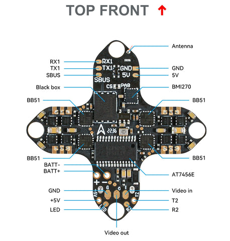 Ultralekki bezszczotkowy kontroler lotu F4 1S 5A AIO jest ponownie dostępny z nowymi i ulepszonymi funkcjami. W porównaniu z poprzednią wersją nowa płyta wykorzystuje Serial ExpressLRS 2.4G zamiast SPI ELRS 2.4G, dzięki czemu może obsługiwać ExpressLRS V3.0, a także ma wersję Frsky RX do wyboru. Zaktualizowaliśmy FC o wysokiej jakości żyroskop BMI270 i sprzęt BB51 ESC. Ponadto ta nowa płyta obsługuje funkcję Betaflight Blackbox.