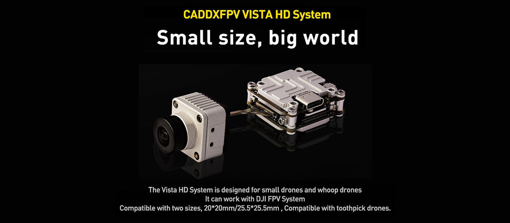 The Caddx Vista HD digital video transmitter can work with DJI FPV camera, goggles, and remote controller. The total weight (with camera and antenna) is 35g only, about 20g lighter than the DJI FPV unit. Besides, it is smaller and designed to suit for whoop drones. With this vista kit, the max range is up to 4 kilometers. BETAFPV mini canopy V3 is suitable for the Caddx Vista greatly. With injection molded process and PE material. The canopy will perfectly protect the Caddx Vista camera.
